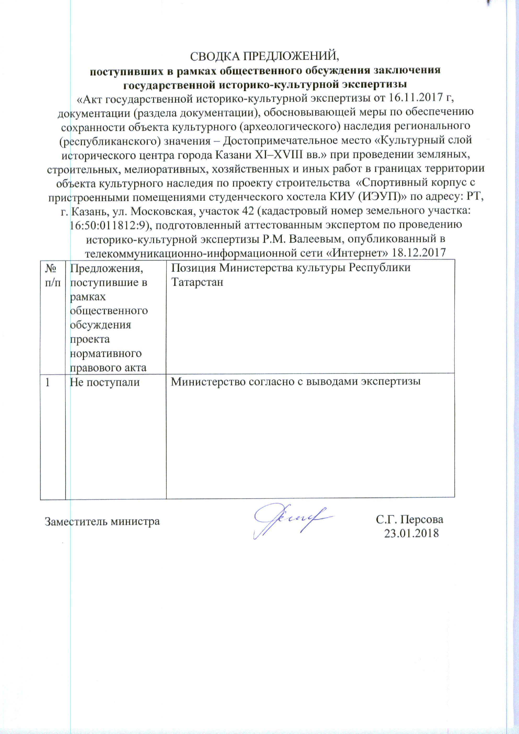 Акт государственной историко-культурной экспертизы документации, обосновывающей меры по обеспечению сохранности объекта культурного (археологического) наследия регионального (республиканского) значения – Достопримечательное место «Культурный слой исторического центра города Казани XI–XVIII вв.» при проведении земляных, строительных, мелиоративных, хозяйственных и иных работ по проекту строительства «Спортивный корпус с пристроенными помещениями студенческого хостела КИУ (ИЭУП)» по адресу: РТ, г. Казань, ул. Московская, участок 42 (кадастровый номер земельного участка: 16:50:011812:9).