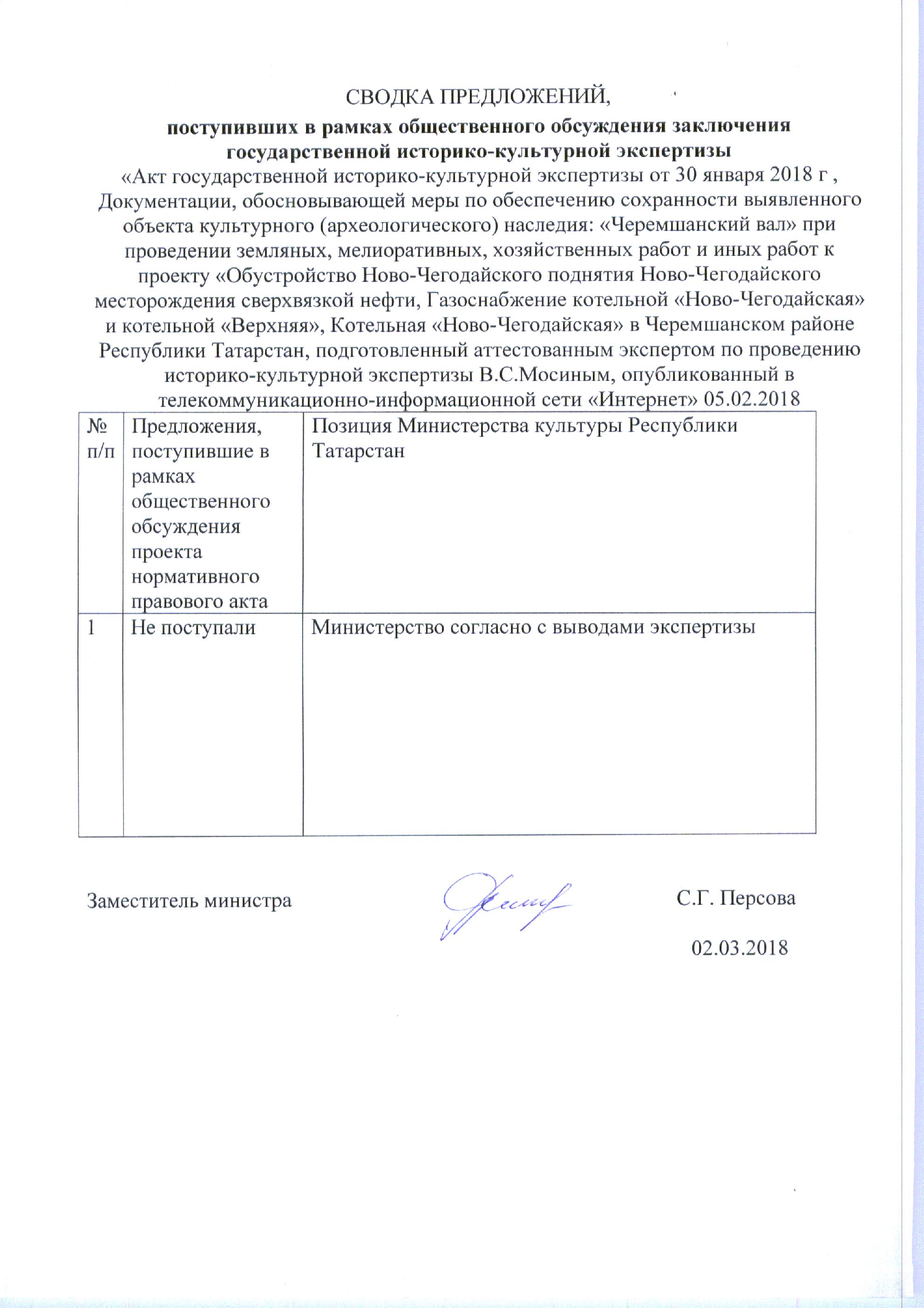 Акт государственной историко-культурной экспертизы документации, обосновывающей меры по обеспечению сохранности выявленного объекта культурного наследия «Черемшанский вал» при проведении земляных, строительных, мелиоративных, хозяйственных и иных работ в границах территории объекта культурного наследия по проекту строительства объекта «Обустройство Ново-Чегодайского поднятия Ново-Чегодайского месторождения сверхвязкой нефти, Газоснабжение котельной «Ново-Чегодайская» и котельной «Верхняя», Котельная «Ново-Чегодайская» в Черемшанском районе Республики Татарстан