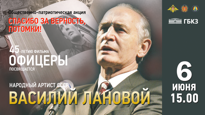 6 июнь көнне Салих Сәйдәшев исемендәге Зур концерт залында СССРның халык артисты Василий Лановойның иҗат кичәсе үткәрелә. Чара “Тугърылык өчен рәхмәт, варисларым!” исемле иҗтимагый-патриотик акция кысаларында үткәрелә. Кичә 15.00 сәгатьтә башлана.
