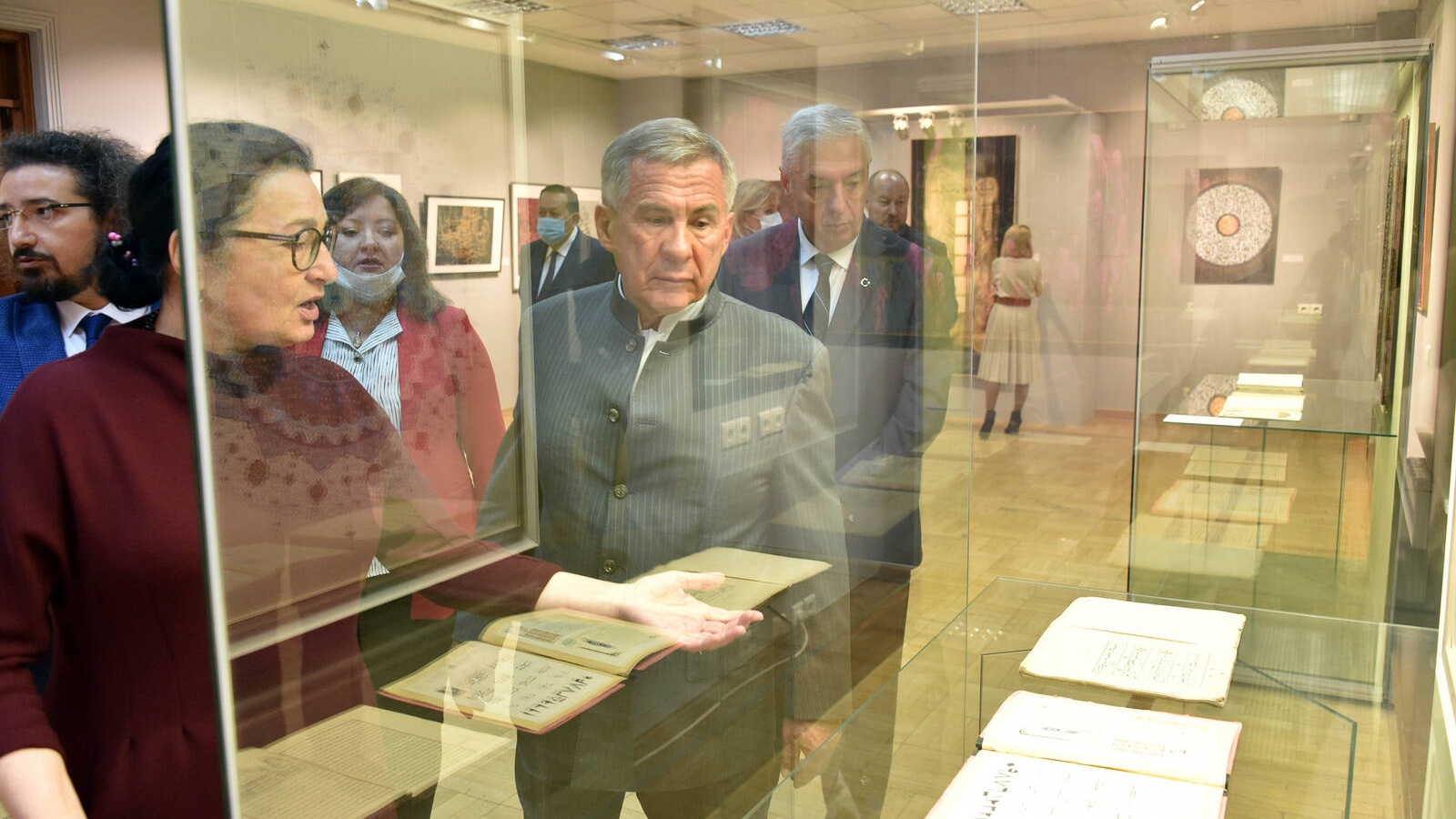 Рөстәм Миңнеханов экспозиция һәм хәзерге заман ислам сәнгатенең төрле жанрлары белән танышты. Ул аеруча Төркия каллиграфы Левент Карадуман хезмәтләрен карады, шулай ук үзе дә картина язуда катнашты. Республика җитәкчелеге белән күргәзмәдә Татарстан Республикасы мәдәният министры Ирада Әюпова да булды.