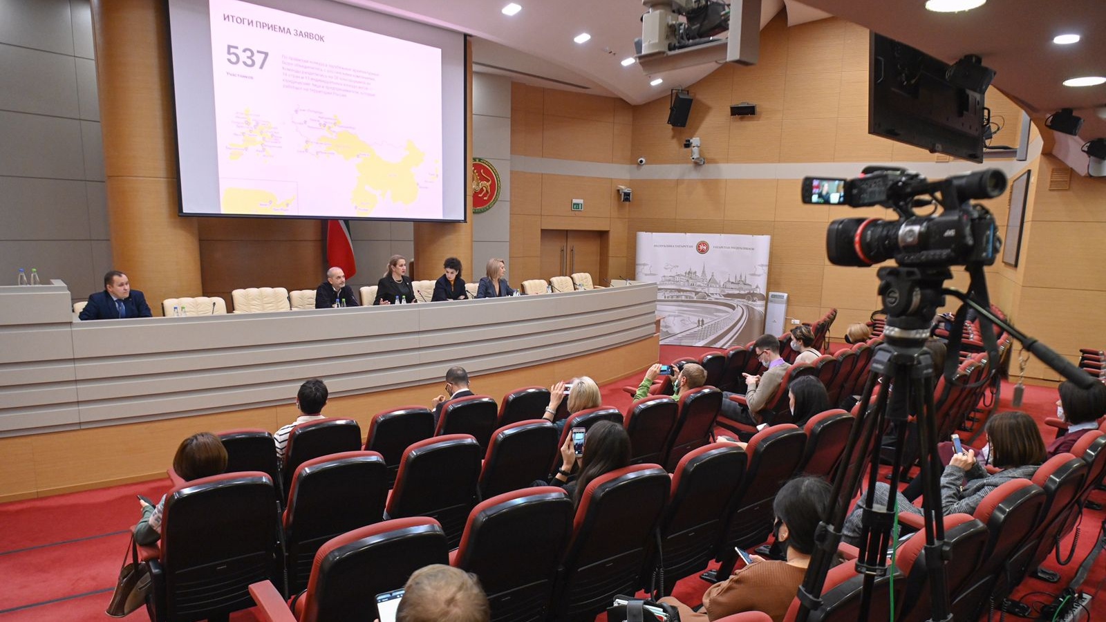 Татарстан Республикасы Министрлар Кабинетында «Г.Камал театрның архитектура концепциясен эшләү буенча халыкара ачык конкурсының беренче этабы нәтиҗәләре турында» дигән темага брифинг булып узды.