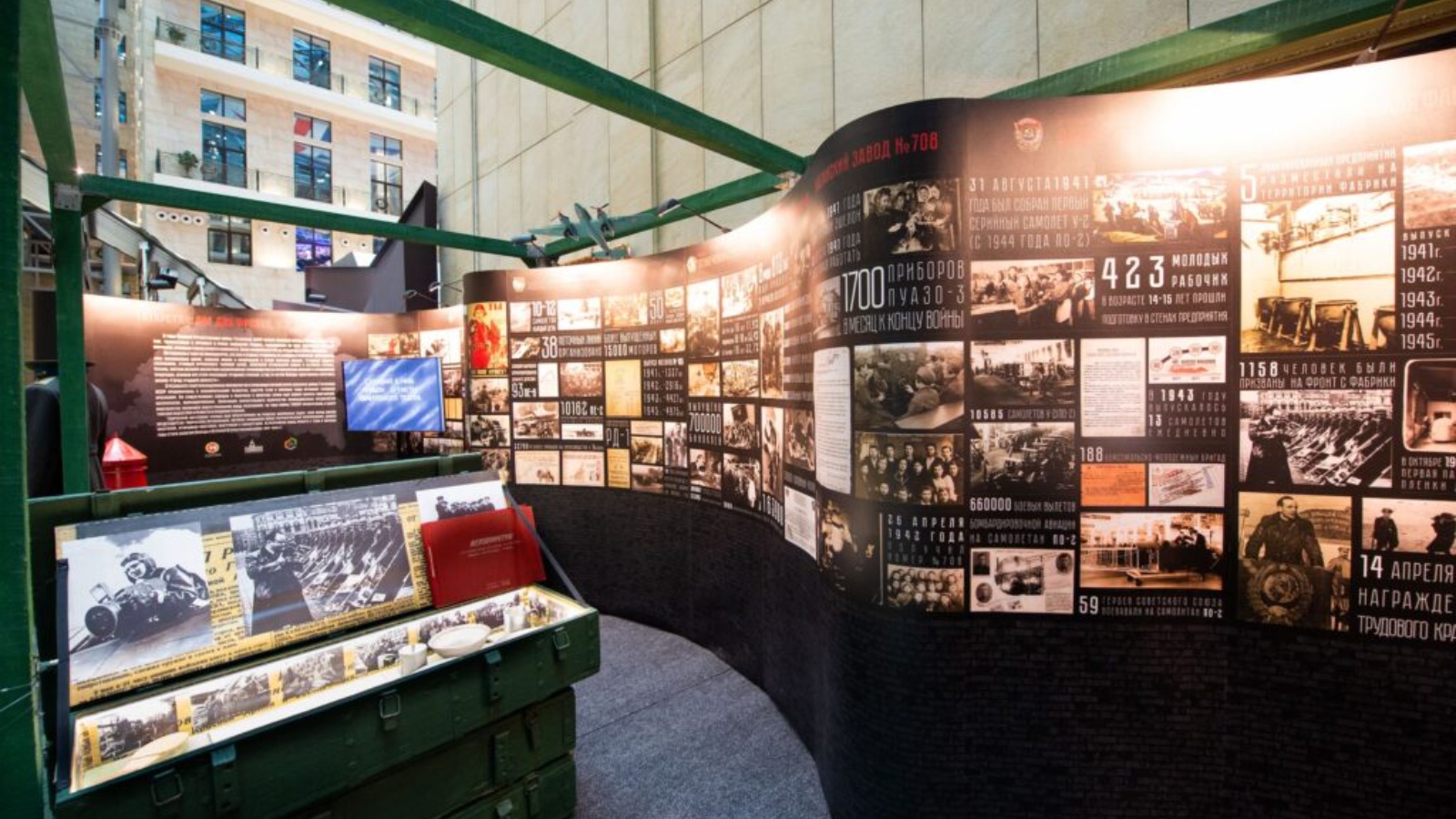 Сугышта Казанда һәм республикада эшләгән заводларның продукция үрнәкләре, уникаль документлар һәм фоторәсемнәр тәкъдим ителде. Предметларның бер өлеше Татарстан башкаласы предприятиеләре: Горбунов исемендәге авиазавод – «Туполев» ҖАҖ филиалы, оптик-механика һәм электротехника заводлары, моторлар төзү җитештерү берләшмәсе, шулай ук Горький исемендәге Яшел Үзән заводы ярдәмендә күргәзмәгә эләкте.