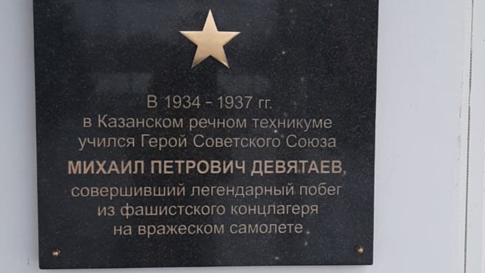 2021 елның 21 декабрендә 10.00 сәгатьтә Идел буе дәүләт су транспорты университетының Казан филиалы бинасы янында (Казан шәһәре, Несмелов ур., 7нче йорт) очучы-истребитель, Советлар Союзы Герое Михаил Девятаевка мемориаль такта ачу тантанасы була.