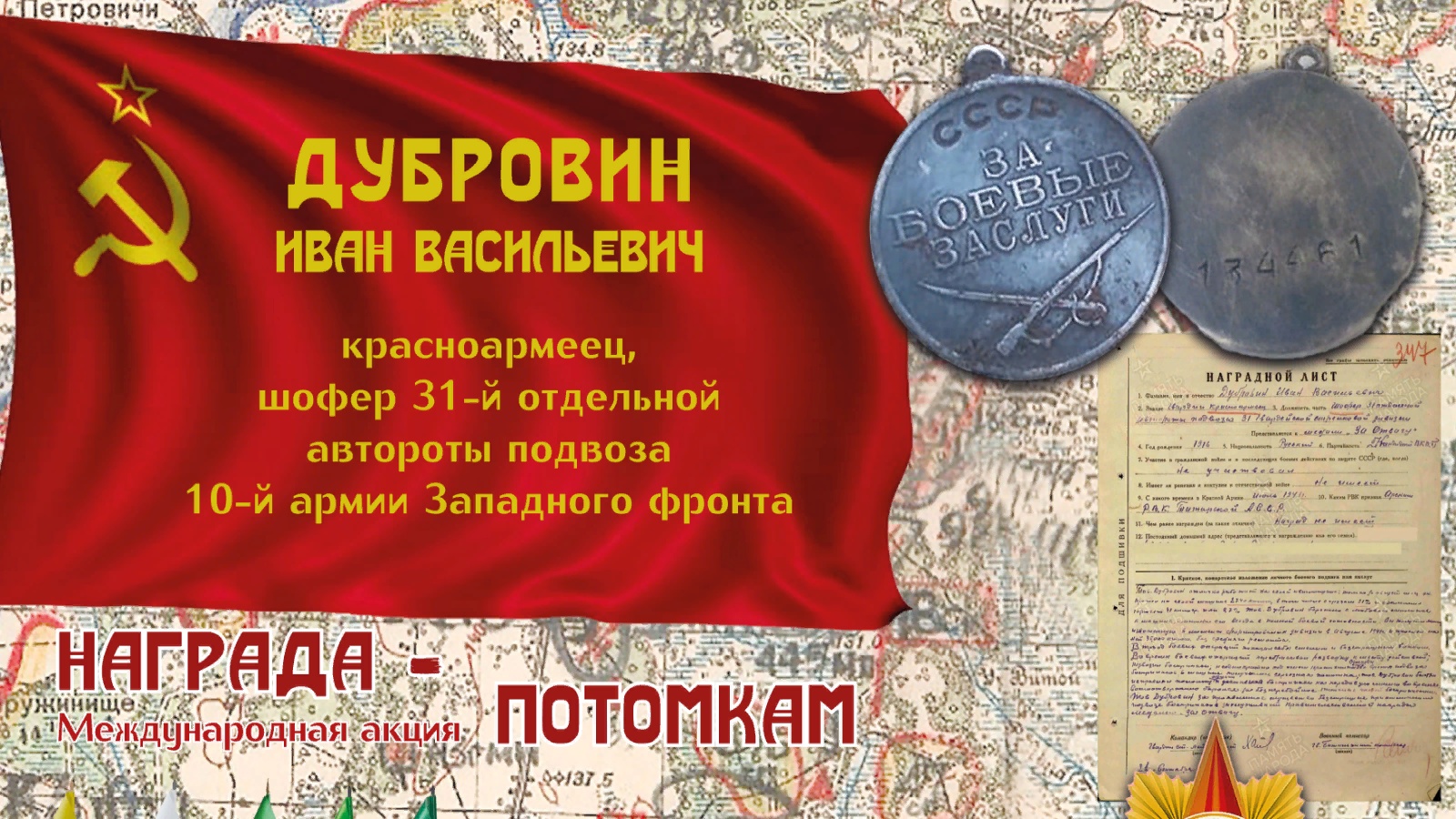 18 гыйнварда 17.00 сәгатьтә Бөек Ватан сугышы Музей-мемориалында Бөек Ватан сугышы фронтовигы Иван Васильевич Дубровин гаиләсенә бүләк тапшырылачак. «Сугышчан казанышлары өчен» медале 2021 елның октябрендә Литвадагы Мариям поле шәһәре янында эзтабарлар тарафыннан табылган.