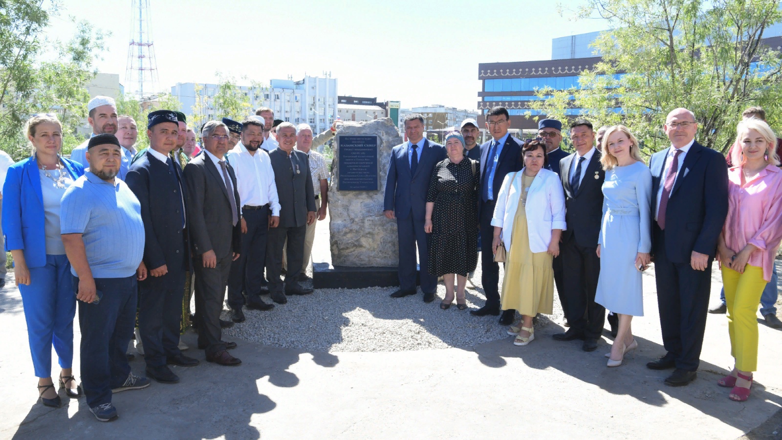 Казан скверының истәлекле ташын ачу хокукы «Туган як» Татар мәдәни үзәге аксакаллары Хисаметдинов Таһир Хәсән улына һәм Тазетдинов Владислав Михаил улына бирелде.