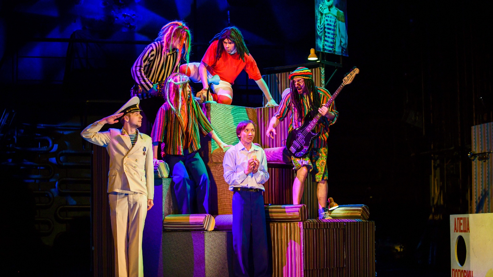 Спектакльдә ТР атказанган артистлары Алексей Зильбер, Гүзәл Шакирҗанова, артистлар Нияз Зиннәтуллин, Евгений Быльнов, Дарья Бакшеева, Гүзәл Валишина, Валерий Антонов, Эрнест Маторкин, Руслан Зөбәйрәев, Ярослав Кац катнаша.
