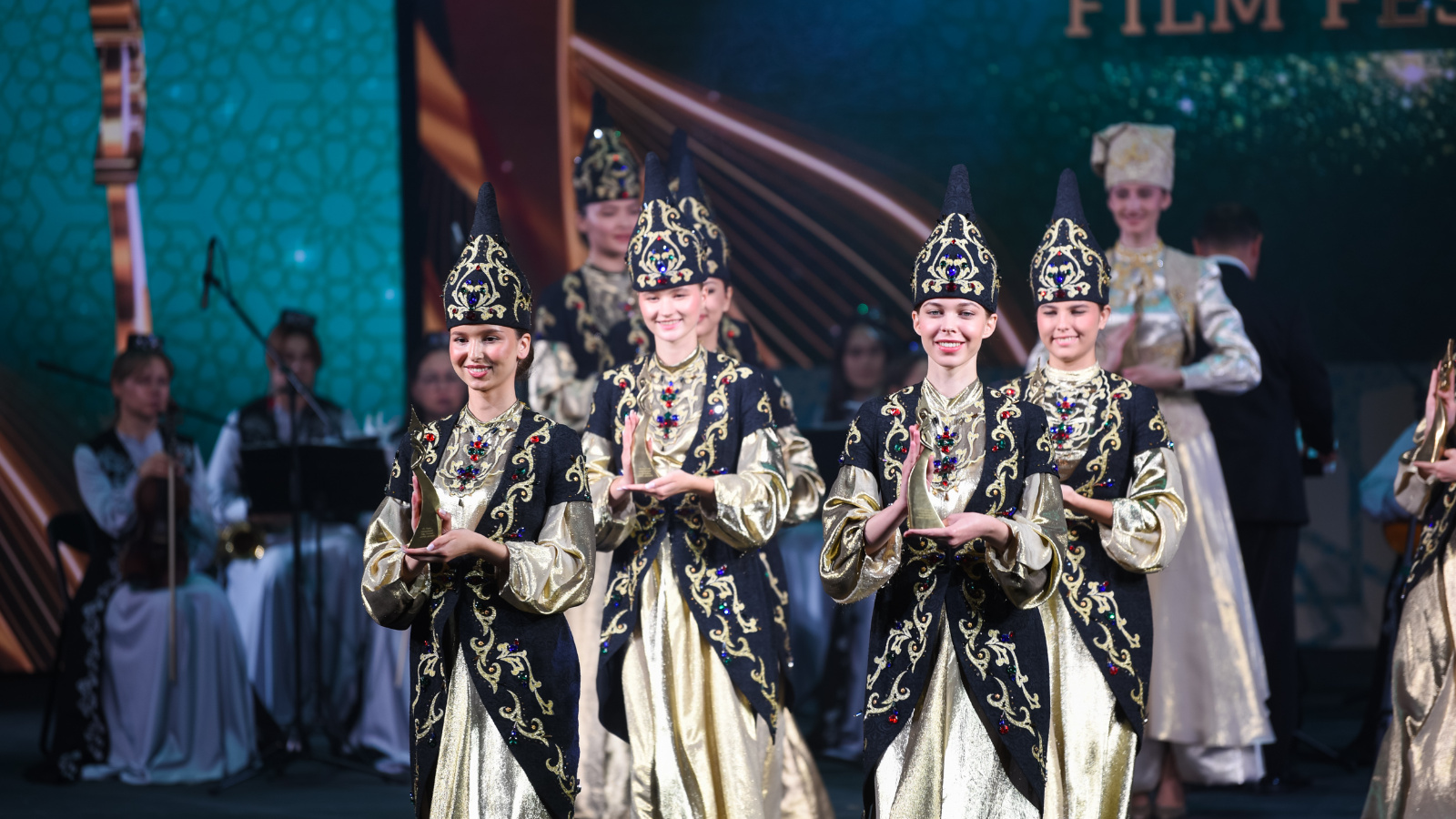 Кичә азагында Казан егетләре төркеме 5-9 сентябрьдә Татарстан башкаласында «Алтын мөнбәр» көндәлекләре кадрлары астында узган кинофестиваль гимнын башкарды.