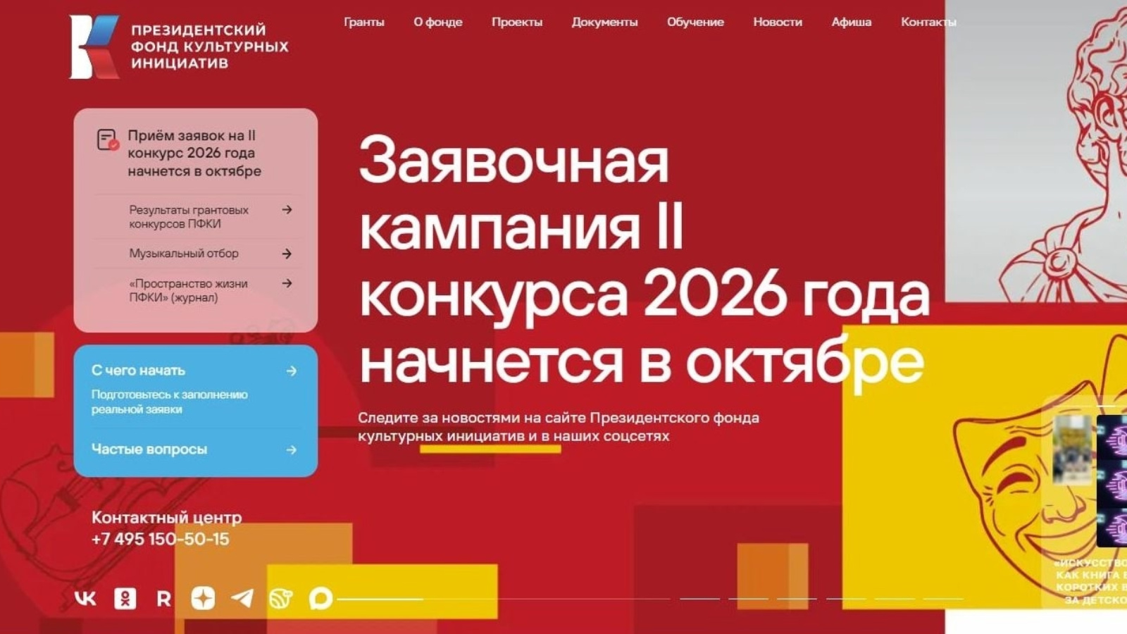 2025 елның 15 октябрендә Президентның Мәдәни инициативалар фонды үткәргән 2026 елгы икенче төп грант конкурсына гаризалар кабул итү башлана.