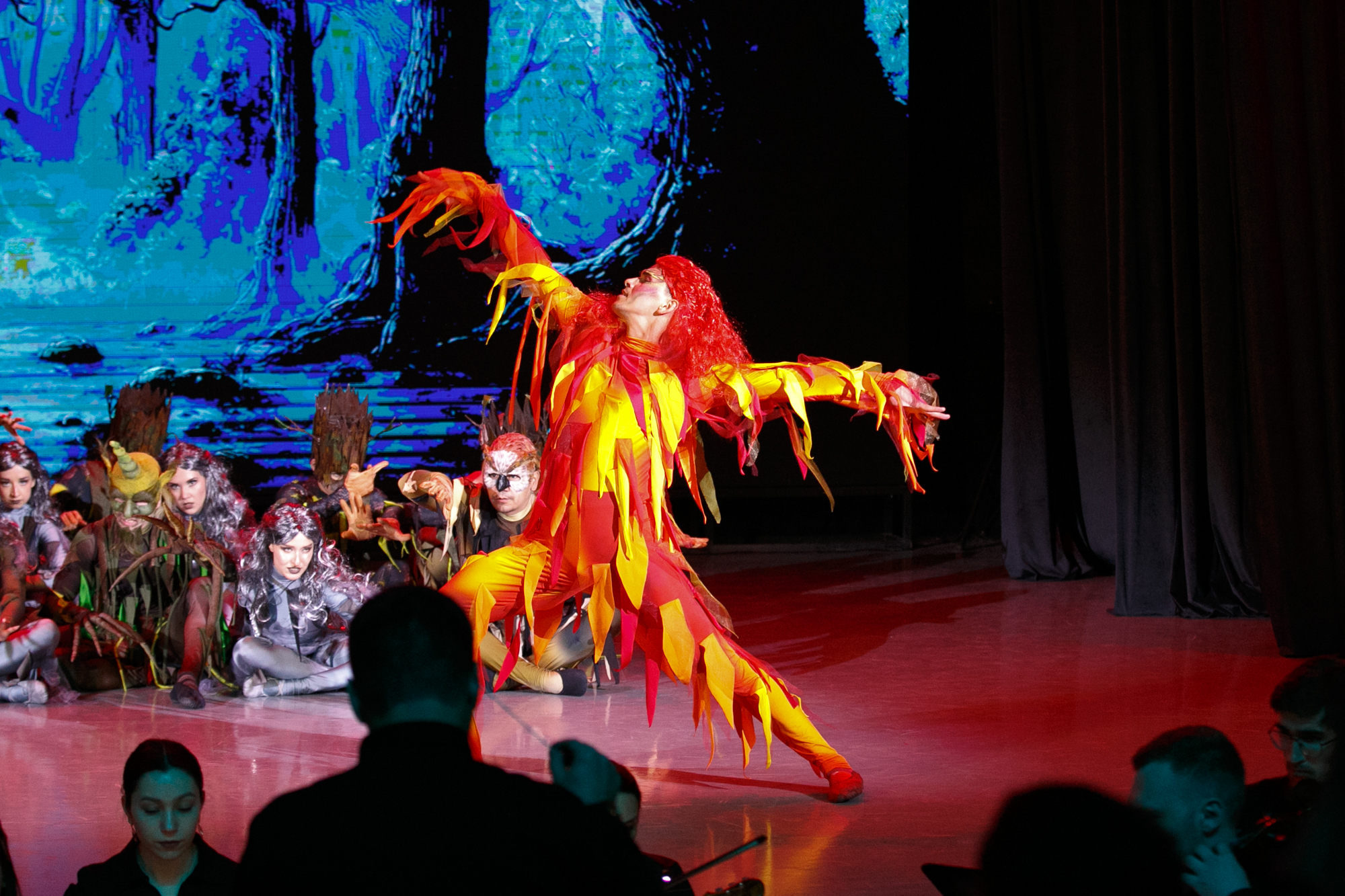 Халык уен кораллары ансамбле өчен ноталар күчерүне композитор Елена Анисимова башкарды. Спектакльнең куючы балетмейстеры – Нинель Мочалова.